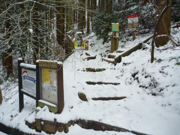 登山口からかなりの積雪量でアイゼンをすぐ付けました。