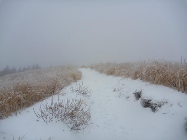 山頂は秋になると一面ススキで覆われますが今回は真っ白い完全な雪山へと変わっていました。