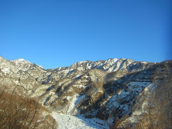 早川谷を奥まで詰めて(悪い渡渉多い。)小さい氷柱を見物してから林道終点へ上がった。