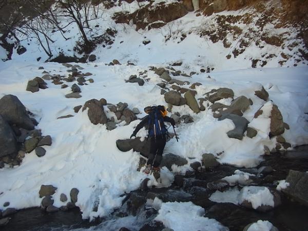 洞門岩からは早川谷ルートを選びました。渡渉や急な斜面の上り下りがあるので初心者にはおすすめできません。