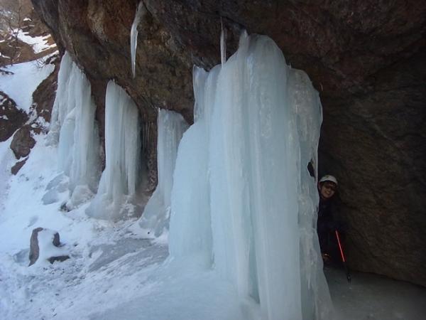 『ツバメ岩の大氷柱』は今年は2本しかなく それも小ぶりでしたが今回初のHさんは感激!うん。よかった。よかった。