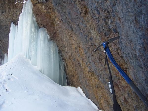 取りついてみると雪が深かったり、つき方が悪かったりで少し難しかったです。初心者では滑落必至なのでは??という状態でした。