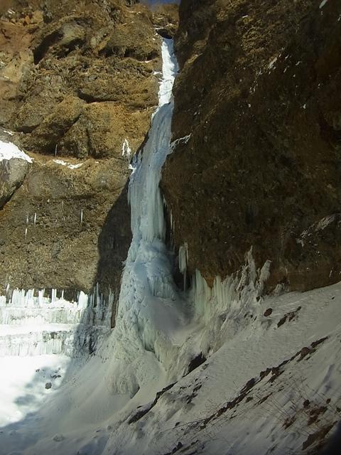 ☆雲竜渓谷 つばめ岩の大氷柱は10時の時点でバンバカ崩れていた。危険なので下に行かないこと。本日、氷柱は2本のみ。