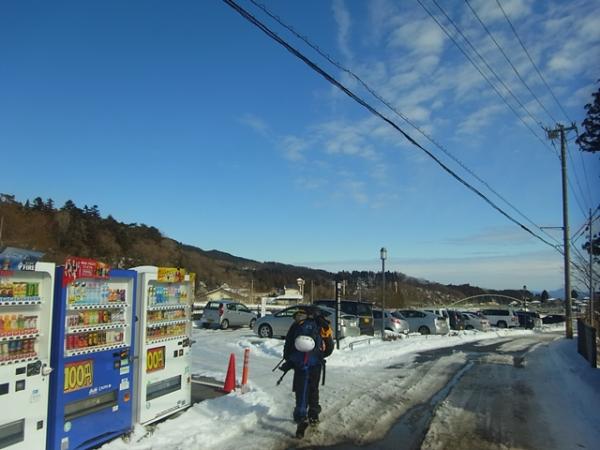 前輪駆動の軽自動車では進めず鉢石市営駐車場へ