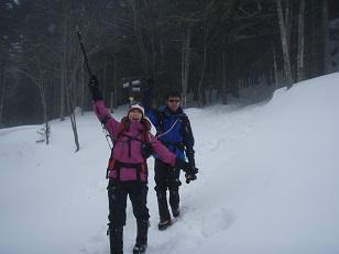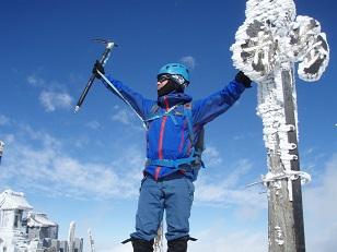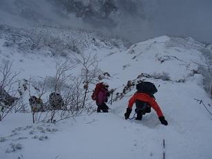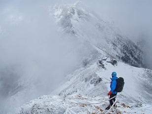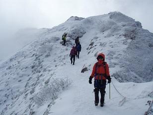 文三郎尾根はトレースもついており歩き易かったですが、稜線に出ると風が強く慎重に歩きます