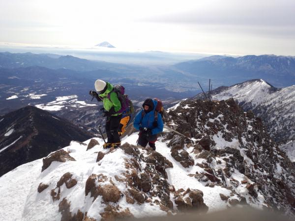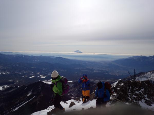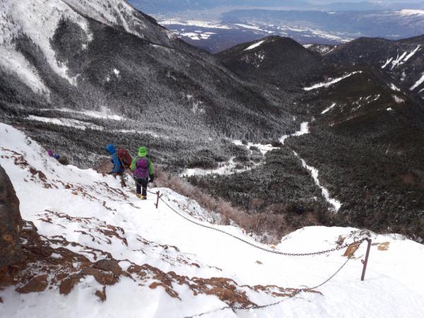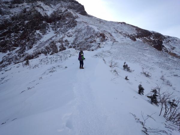 - 頂上付近は雪が少なく、階段や梯子が出ていて歩きにくかったです。