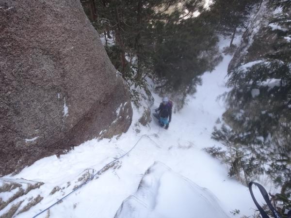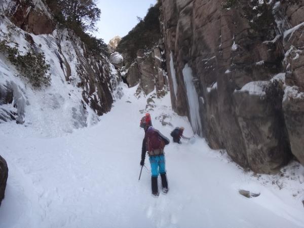 目的は3ルンゼでのアイスクライミングでしたが、道中(藤内沢)も非常に登りごたえのあるルート。