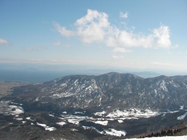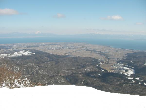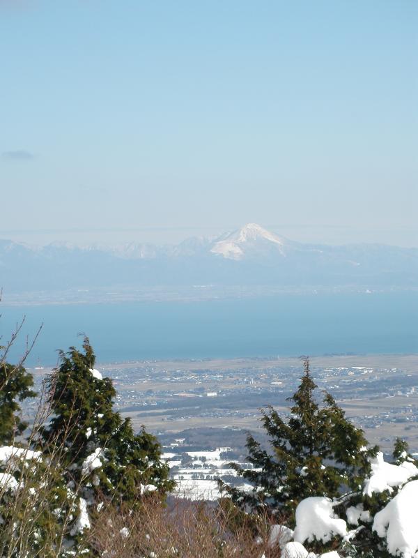 とても展望のいい山で、山頂からは360度の展望が開けており、琵琶湖や伊吹山、鈴鹿山脈、白山、リトル比良などの山々が見渡せました。滑りの方は817m点から東へ落ちる沢が比較的疎林で滑りやすく、パウダーランが楽しめました。
