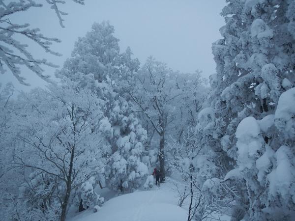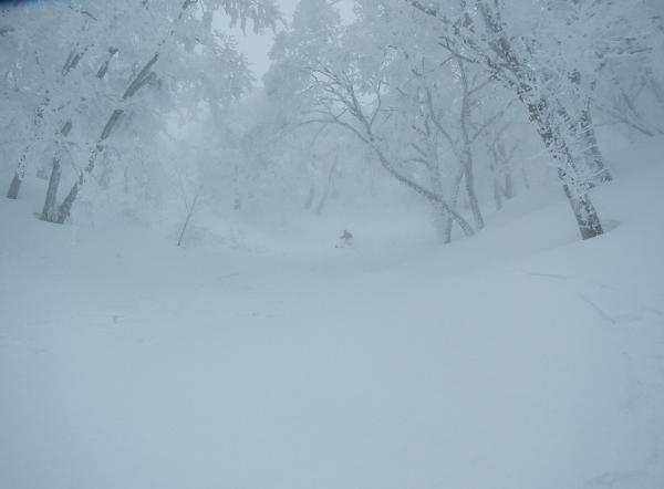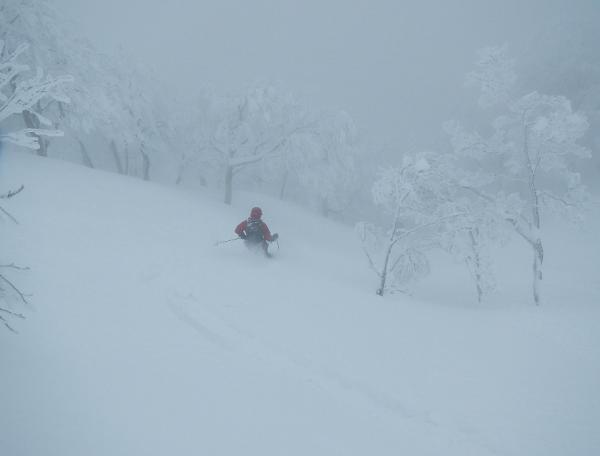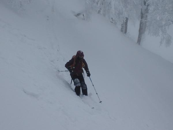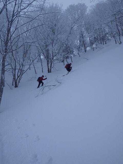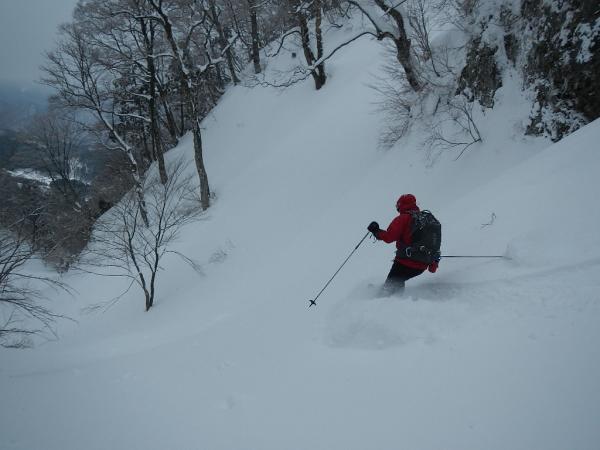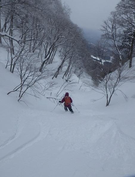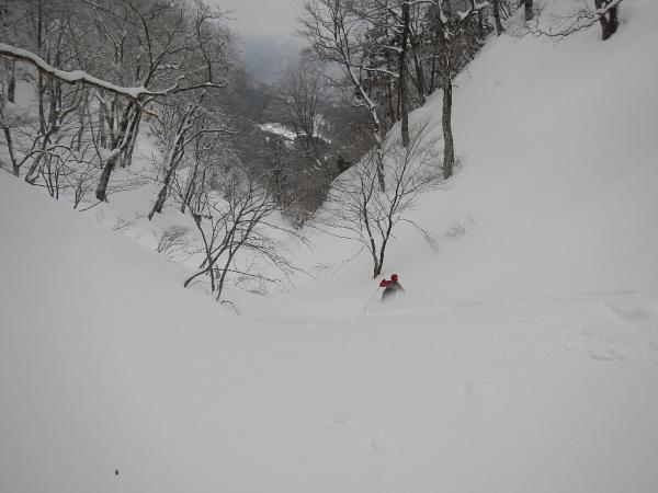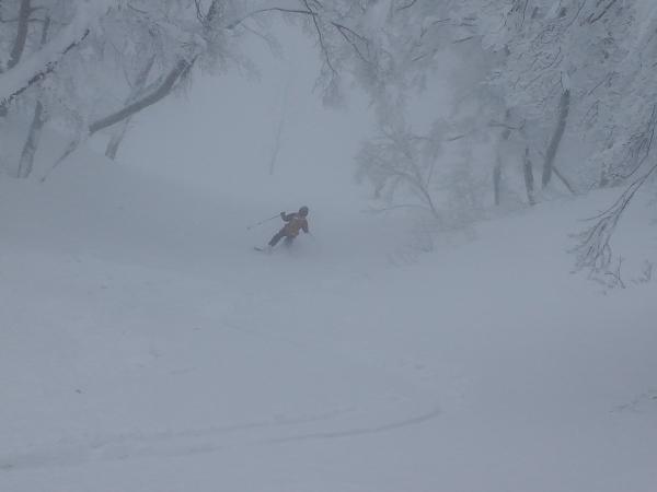 気温も低く曇っていましたが、仙谷の雪は重くてコントロールのしにくい雪でした。