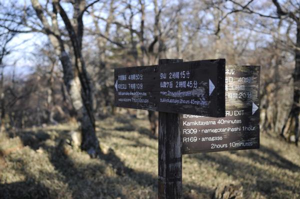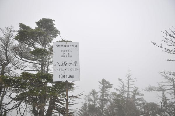 - 行者還トンネル東口→(60分)→一ノ垰→(30分)→奥駆道出合→(120分)→弥山→(30分)→八経ヶ岳→(30分)→弥山→(100分)→奥駆道出合→(40分)→行者還トンネル西口→(20分)→行者還トンネル東口