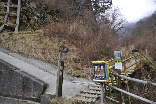 - 行者還トンネルの冬季通行止め間近ですが、暖かかったこともあり、登山口には雪がありませんでした。