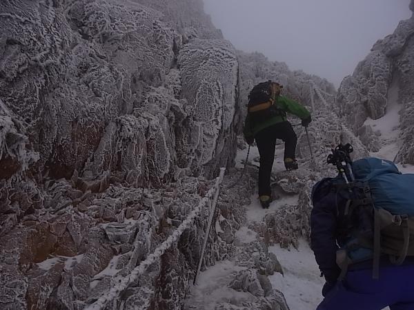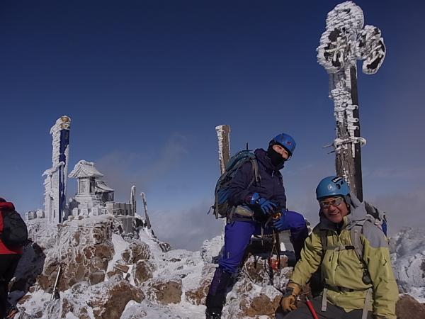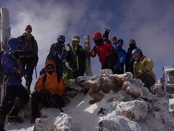去年は大雪のラッセルで頂上には届きませんでしたが、今年はアイゼンを効かせながらの快適登山でした。
