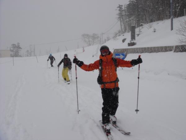 今回はスノーボード、山スキー、テレマーク、スノーシューという混合部隊!!