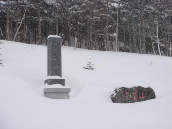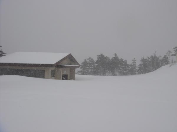 当日は平野部でも雪が積もるほどの大雪、もちろん御嶽山は森林限界から上はガスが掛かり何も見えない状態。