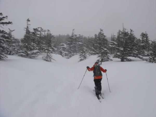 とりあえず行けるとこまで行こうということで登り始めましたが、ちょうど森林限界付近でわたくし松林のシールの調子が悪くなり(ただシールの張り方が悪かっただけでした 反省)、ここからドロップしました。