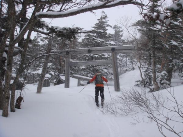 - ゲレンデトップから田の原登山口まではスキー場のパノラマコースをやや下ると鳥居が見えてきます。