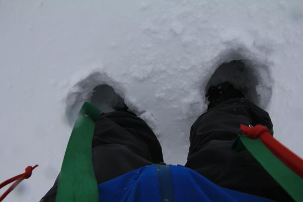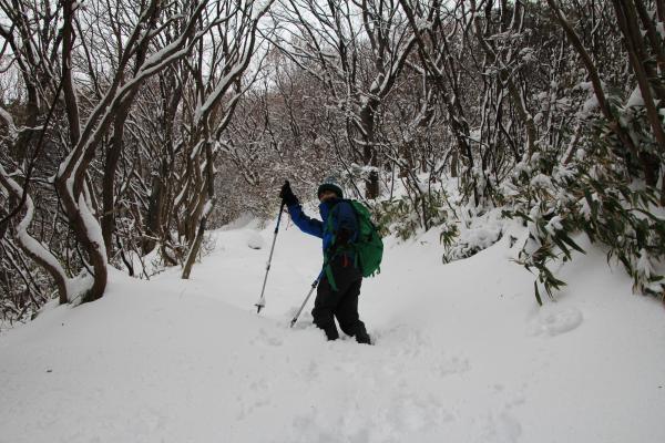 幸い途中からスノーシューを履いて下山する登山客に遭遇し、トレースが出来た