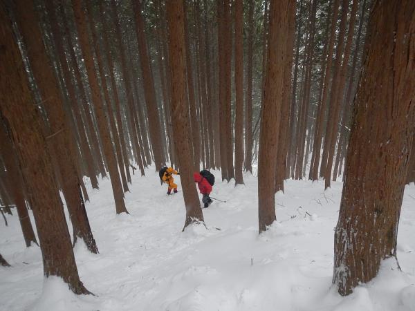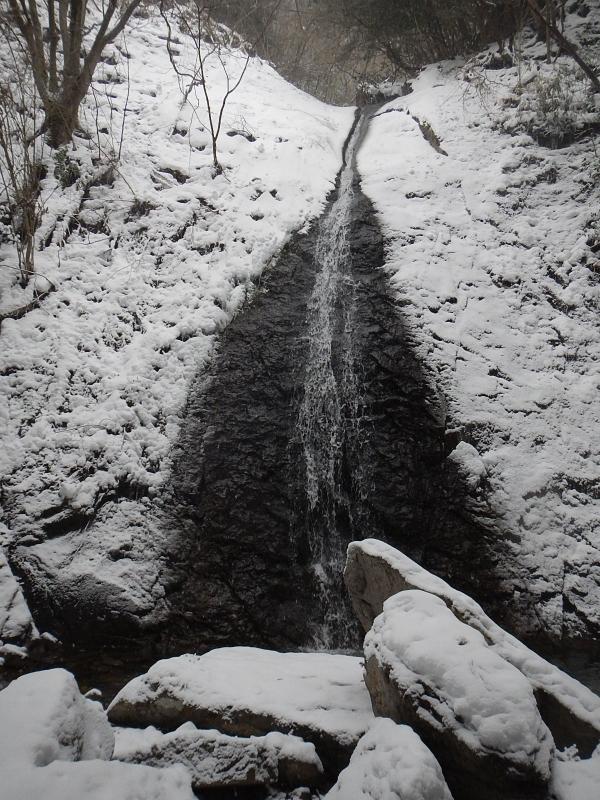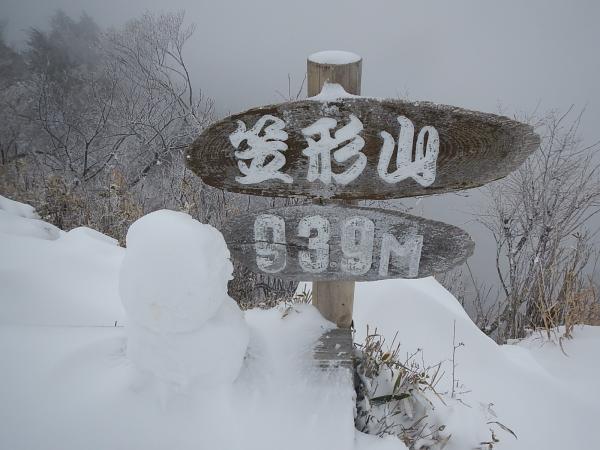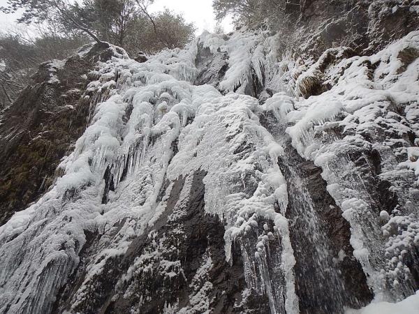 氷瀑第二弾と思い笠形山の扁妙の滝を見に行きました。他に登山客はおらず、踏み跡がありませんでした。扁妙の滝の凍り具合は50%くらいでしたが氷瀑の上に積もった雪がとてもきれいでした。2月の初めにかなり暖かくなったためおそらく一度溶けてしまったと思われるのが残念です。6合目あたりからトレースもなく、フカフカ雪の樹林帯の急登で疲れはしましたが、新雪を歩くのはやっぱり楽しい。まわりの景色も白一色できれいです。7合目から稜線に出るまではほぼ高低差のない巻き道でハイキング気分です。稜線に出るとまた膝上まで雪に埋もれながらの前進。頂上の展望は何も見えずでしたが楽しい雪遊びができました。