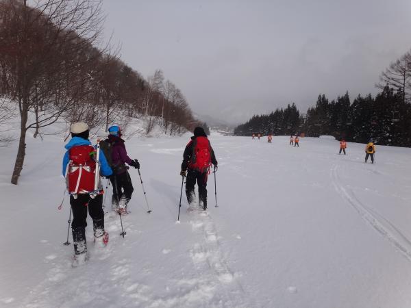 - 雪の深さはくるぶし程度。スノーシュー、わかんがあると歩きやすいです。