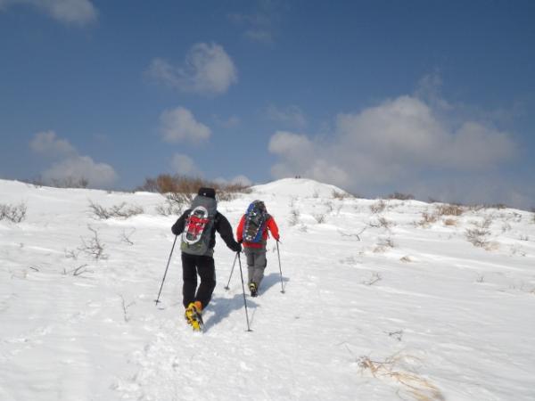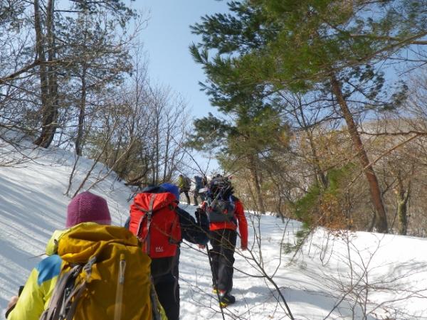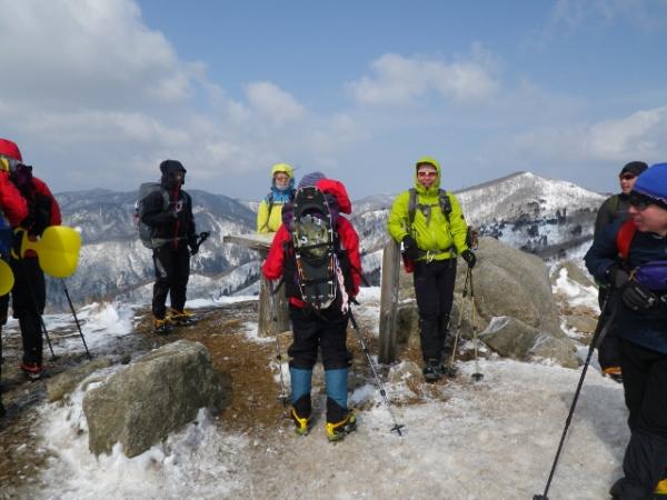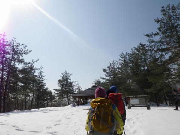 東屋までは風もなく比較的暖かかったですが、東屋から先の沢沿いの道は細く、稜線沿いは風が非常に強く雪もかたかったです。風は強かったですが山頂からの景色は最高でした。