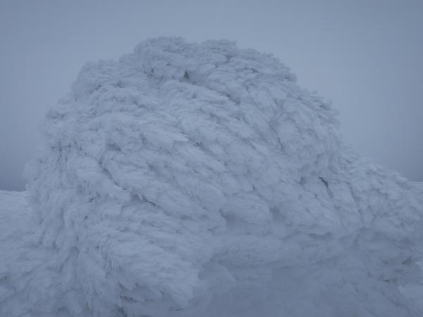 刈田岳山頂にも立派な鳥居と神社があったが激しく氷に覆われていた。