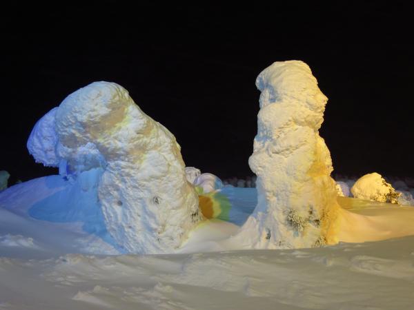 山頂駅では樹氷=アイスモンスターがお出迎えしてくれた。