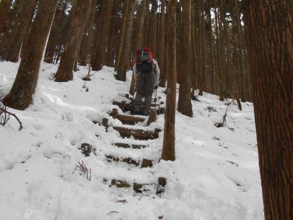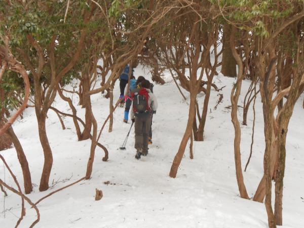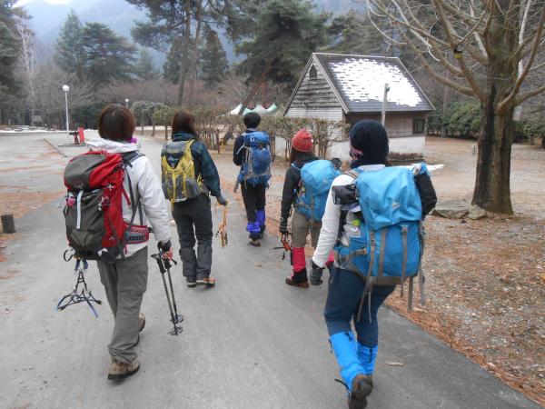 - 駐車場からキャンプ場を抜けて、登山口に入るまでは、アイゼンは必要ありませんが、登山口からはアイゼンが必要です。特に5合目の東屋過ぎと、山頂手前は急登になりますので6本爪がおすすめです。特に下りでは4本だと転倒の恐れがあります。心配な方はストックもご持参ください。