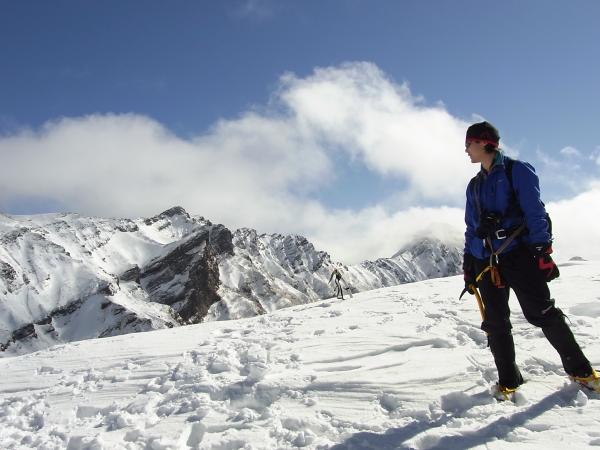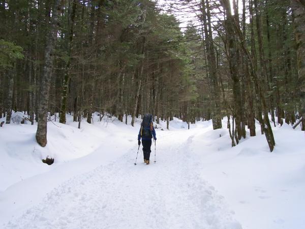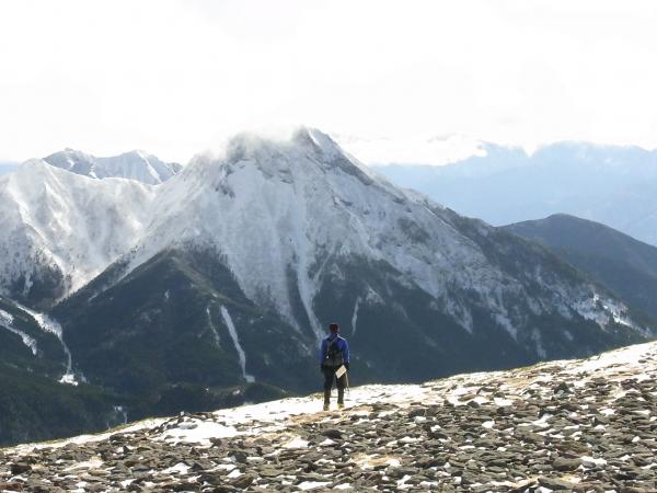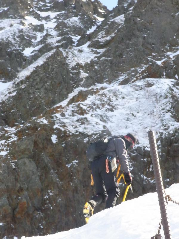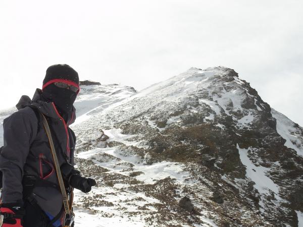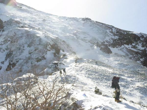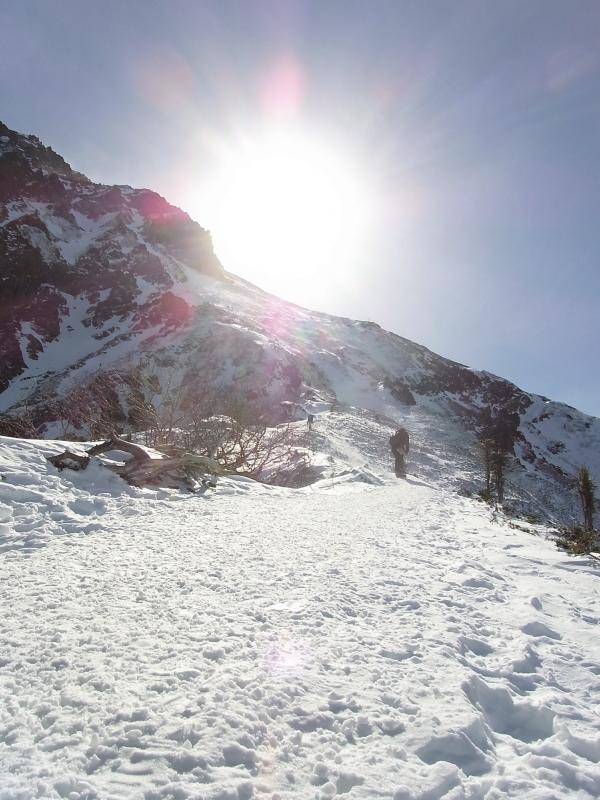 - 赤岳頂上付近では風も強いため防寒対策をしっかりしましょう。トレースはしっかりとついています。