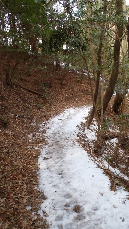 先日の大雪でどうなっているかと思いましたが、予想以上に雪が残ってました。初めからどこで引き返すことになるかと思い走っていましたが、西の宮を過ぎたあたりからほとんど走れませんでした。下山が怖いので東の宮で引き返しました。