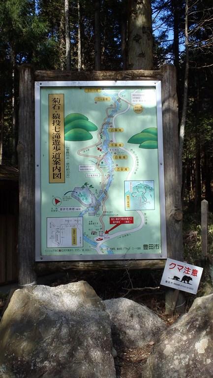 猿投神社駐車場(40分)菊石・猿投七滝遊歩道入口(45分)猿投神社駐車場
