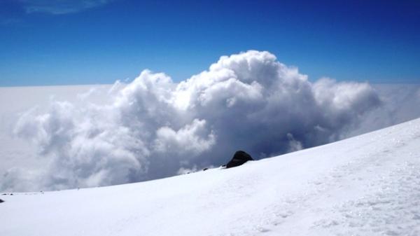 2010年の富士山は特に雪解けが遅く、6月にもかかわらず12本爪アイゼン、ピッケルを用いた本格的な雪山登山となりました。天候に恵まれたため、空の青(どちらかというと藍色)とまぶしく輝く雪の斜面を、自分の踏み音だけを聞きながら登る富士山は素晴らしく、自由と緊張感は単独行ならではのもので、個人的にはとても良い経験が出来たと感じています。