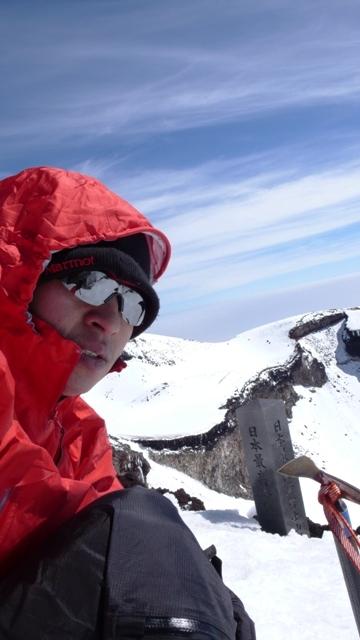・7合目以降次第に積雪が増え、アイゼンとピッケルを装備しました。他の登山者はみなここまでのようでした。ここから八合目までの登りが最もきつく時間と体力を使いました。