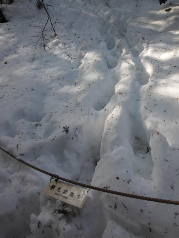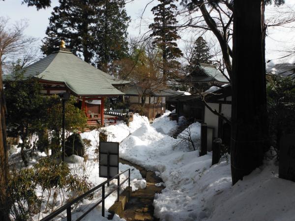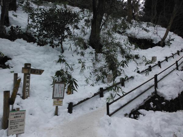 薬王院までは木道も雪に埋まり往路と同様の雪道ですが、お寺から先は完全に除雪されています。