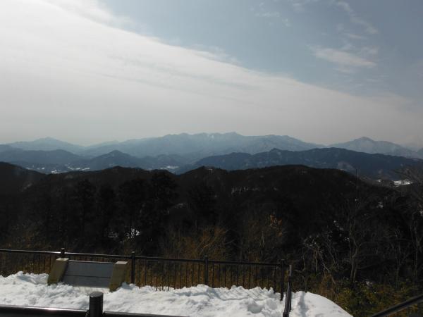 雪を冠した丹沢山塊が一望でき、先日同じ様に降雪後を狙って登った大山も見えていました。