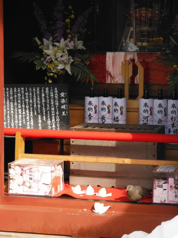 雪の薬王院は美しく、こっそりお供え物に舌鼓を打つハトが可愛らしかったです。