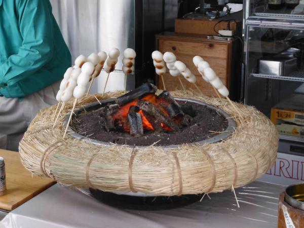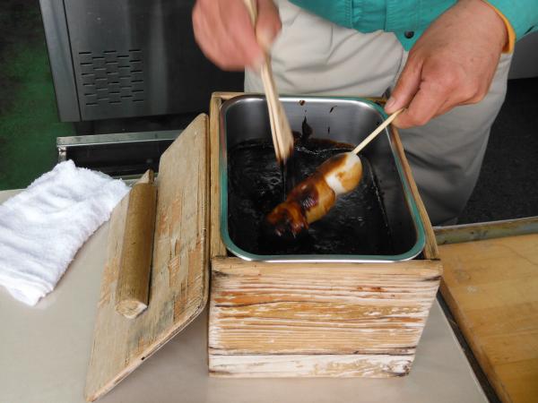 炭火で焼いた団子は、外はパリパリで中はモチモチ!