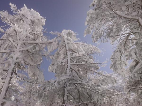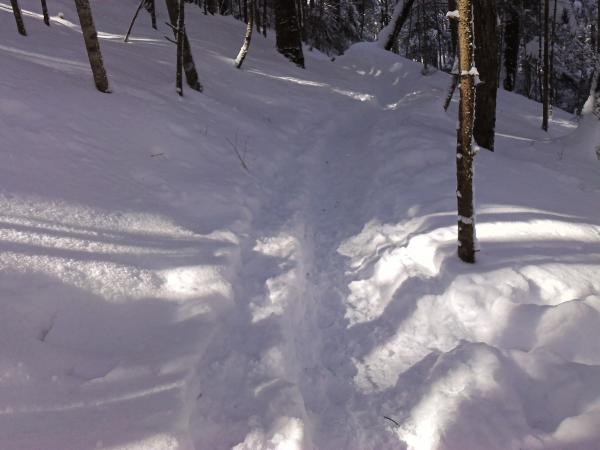すれ違う方も多く、夜間積雪があった様子でしたがトレースはついています。