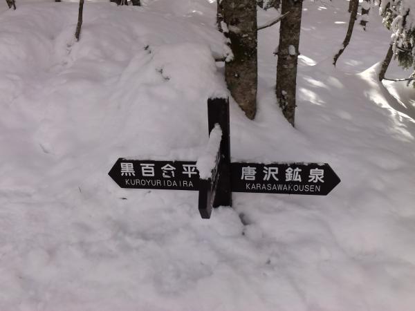渋の湯から黒百合ヒュッテはアイゼンもしくは冬用登山靴で、トレースあり。