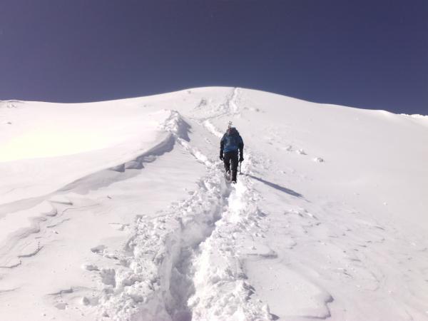 中山峠から先の稜線に出ると風が強くなり、トレースが消えている場所もあります。