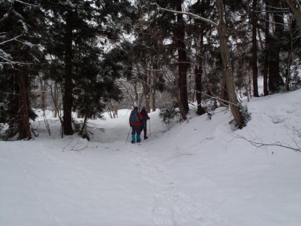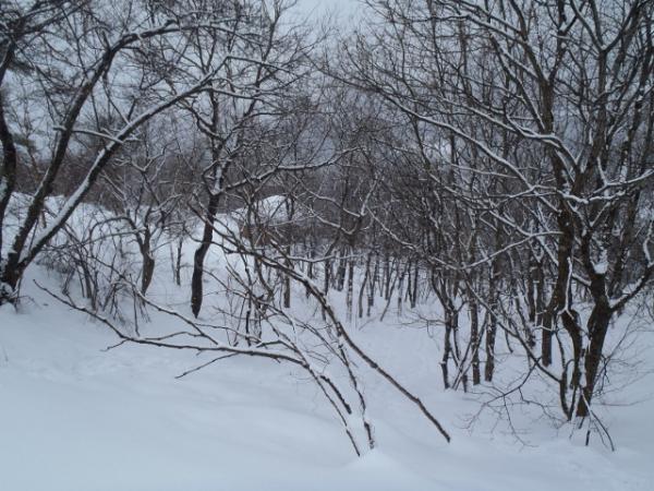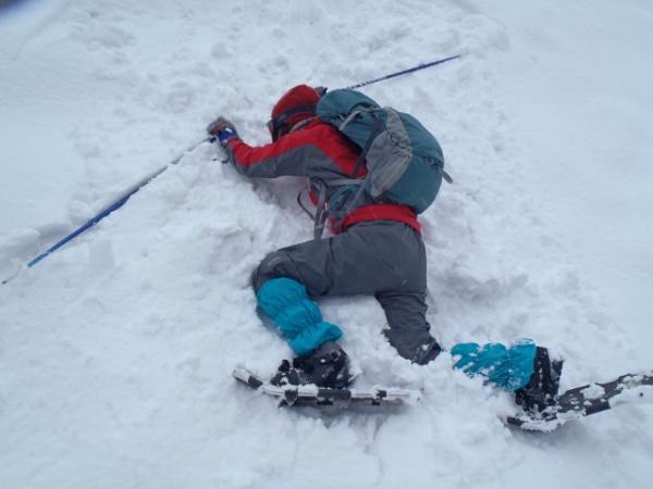 柔らかい雪の下はやや締まっており踏み抜くと足を抜くのが一苦労ですので