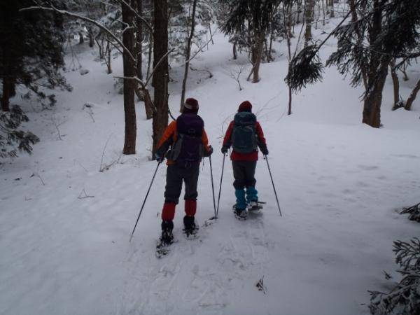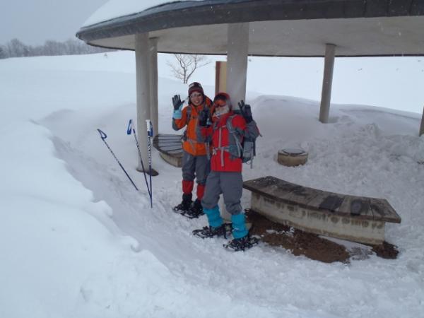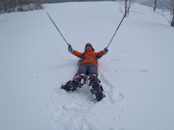 初めてスノーシューを履く友人2人と一緒に、慣れ親しんだ神鍋山に行ってきました。