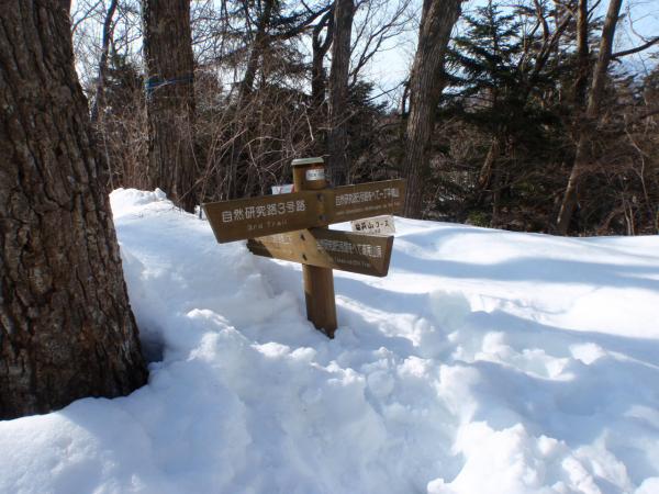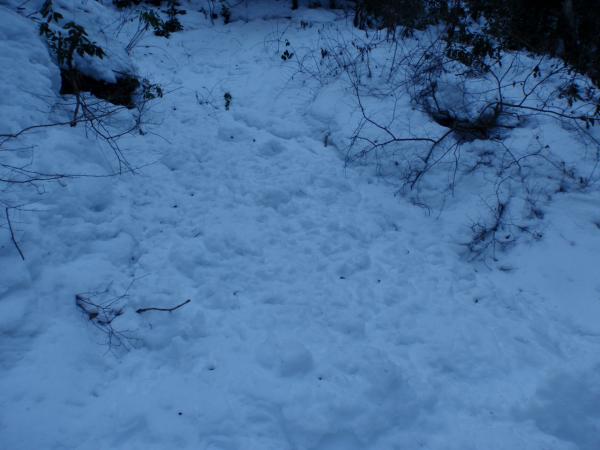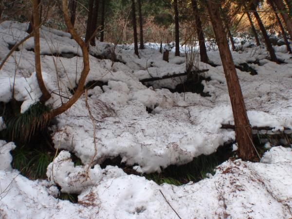 ・6号路は沢沿いで日当りが少ないせいか、残雪が多いです。斜面からの落雪や、踏み抜きに注意。