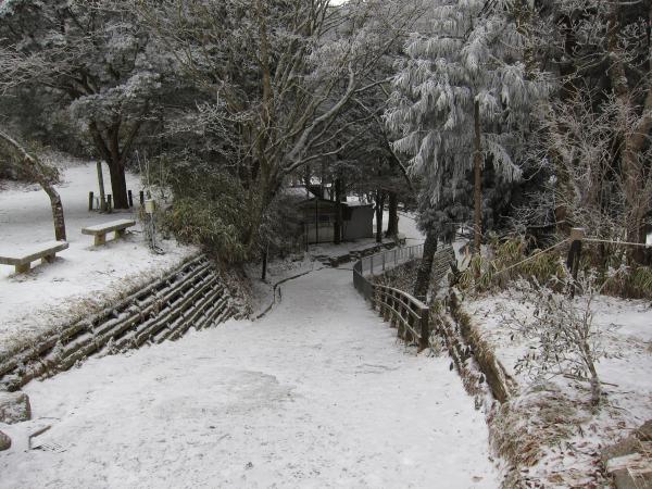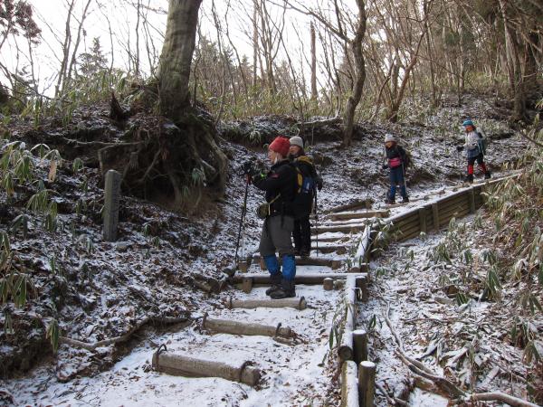 三月初旬の暖かさから一転、この日は寒波で山頂付近は積雪や霜柱がありましたので、もうしばらくはアイゼンを用意したほうがいいと思います。(横着して付けずに歩いて私も滑ってしまいました)