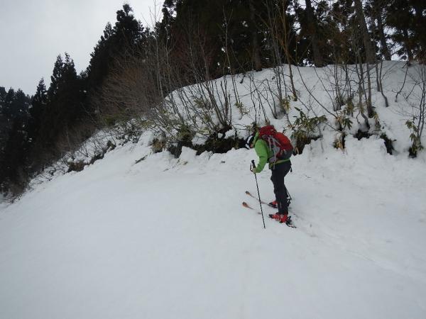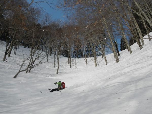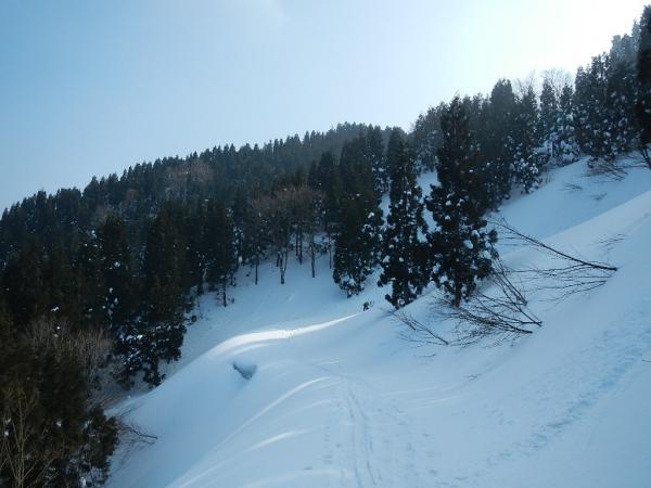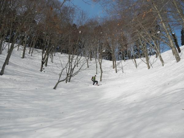 ゲレンデトップからは林道が通っており、トレースもばっちりありました。