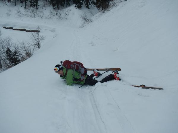 スキー場とは勝手の違う自然のゲレンデに四苦八苦しながらも無事に万場のゲレンデに戻ってくることが出来ました。