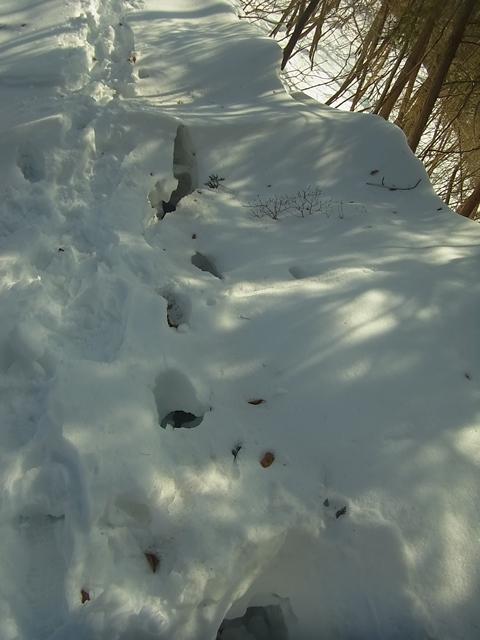 岩屋観音の分岐辺りでは60cmくらい。ズボズボ潜る。