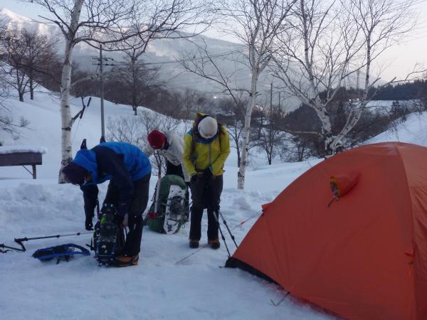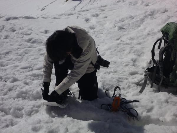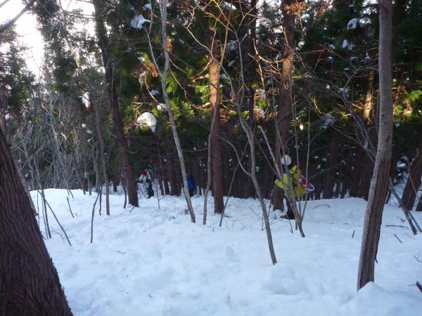 一の谷を過ぎた辺りからは雪量も多くなり始めスノーシュー・ワカンが活躍します。