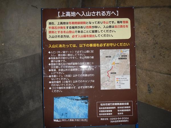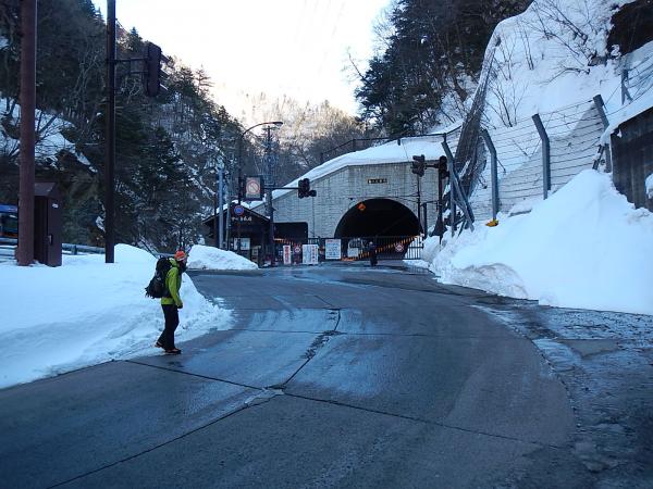平日は沢渡からのタクシーが出ていないようで、坂巻温泉(当日は休業日でした)に車を止めさせていただき、車道を釜トンネルへ。往来の車は少なめですが十分に注意して歩きましょう。