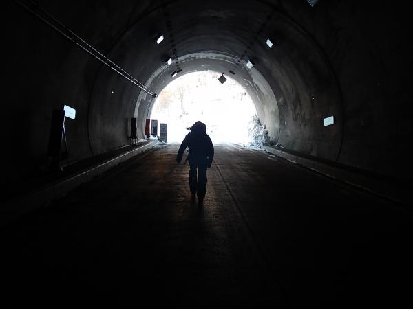 釜トンネルは暗いためヘッドランプは必携です。