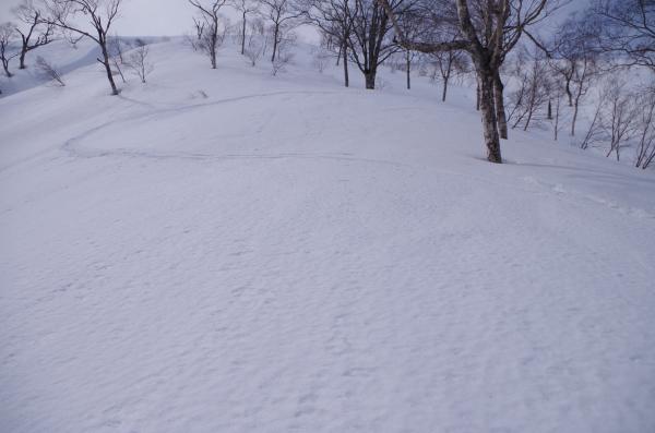 - スキー場で5℃の気温で、春の陽気でした、雪質はウエットで部分的に最中状態で重たい